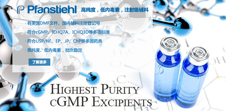 “熱烈祝賀Pfanstiehl的注射級甘氨酸Glycine(G-140)喜獲CDE登記號F20250000403, 這是Pfanstiehl產品獲得的第18個CDE登記號!”甘氨酸在醫藥輔料制劑中應用廣泛,, 可作為緩沖劑,增溶劑,穩定劑等,具有諸多優勢。Pfanstiehl秉承一貫高品質理念,為滿足全球生物制藥行業對于高品質甘氨酸的需求,隆重推出的注射級甘氨酸Glycine (G-140), 具有超高純度,超低內毒素,超低金屬殘留的特點,單獨檢測29種金屬離子,并且新增DNA,RNA,DNA酶,RNA酶和脂肪酶,亞硝酸鹽等多項質量指標的檢測,符合多國藥典規定(USP, EP, BP, JPE, ChP),可用于生物治療性藥物和疫苗的生產。產品信息:· 產品名稱:Glycine, High Purity, Low Endotoxin, Low Metals, USP, EP, BP, JPE, ChP (G-140)· 中文名稱:甘氨酸· 分子式:C2H5NO2· 分子量:75.07 g / mol· CAS號:56-40-6· 產品貨號:G-140產品特點: · 超高純度,超低內毒素,超低微生物含量,超低金屬雜質殘留· 質量指標新增DNA,RNA,DNA酶,RNA酶,脂肪酶和亞硝酸鹽檢測· 符合多國藥典:USP, EP, BP, JPE, ChP· 符合ICH Q3D標準· 符合GMP標準· 已獲DMF和CDE登記號 產品應用:· 緩沖劑· 穩定劑· 增溶劑如果您對Pfanstiehl注射級別Glycine G-140感興趣,歡迎聯系Pfanstiehl 中國區代理商北京西美杰科技有限公司獲得如下詳細的產品概況說明文件和測試樣品。Pfanstiehl Inc.最新產品系列如下,歡迎聯系北京西美杰科技有限公司獲取100g裝免費樣品。北京西美杰科技有限公司為Pfanstiehl中國代理,為客戶提供完善的技術支持與售后服務。歡迎撥打西美杰客服電話400-050-4006或者登陸網站www_xmjsci_com.gsszyw.com了解更多信息。 更多>